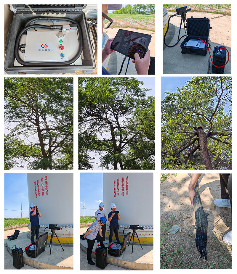 2025年6月5日,國盛激光自主研發(fā)的新一代高科技產(chǎn)品——激光清障儀,在中國華電集團旗下風力發(fā)電場震撼亮相,進行了一場備受矚目的電力設施清障效果測試,順利完成實地清障效果測試,取得圓滿成功。