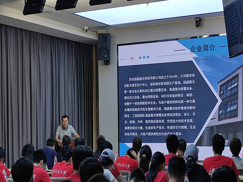 隨后,技術(shù)總監(jiān)呂文輝簡單介紹了公司的概況:“西安國盛激光成立于 2015 年,經(jīng)過多年的發(fā)展,已經(jīng)成為一家專業(yè)從事自動化激光熔覆設(shè)備、高速激光熔覆設(shè)備、激光淬火設(shè)備、激光焊接設(shè)備、3D 打印設(shè)備研發(fā)、制造、銷售于一體的高科技企業(yè)。我們始終秉持著創(chuàng)新驅(qū)動、質(zhì)量為本的理念,致力于為客戶提供結(jié)構(gòu)功能一體化激光增材制造技術(shù)的全套解決方案。他還著重介紹了西安國盛激光在激光行業(yè)所取得的豐碩發(fā)展成果,如在激光熔覆、激光淬火、激光清洗及 3D 打印等核心技術(shù)上的創(chuàng)新突破,以及這些技術(shù)在石油、化工、鋼廠、航天等多個重要領(lǐng)域的成功應(yīng)用案例。最后,呂文輝總監(jiān)語重心長地勉勵在場的大學(xué)生們,要珍惜在校時光,努力豐富知識儲備,提升自身綜合素質(zhì),為未來更好地融入社會發(fā)展做好充分準(zhǔn)備?!?/span>