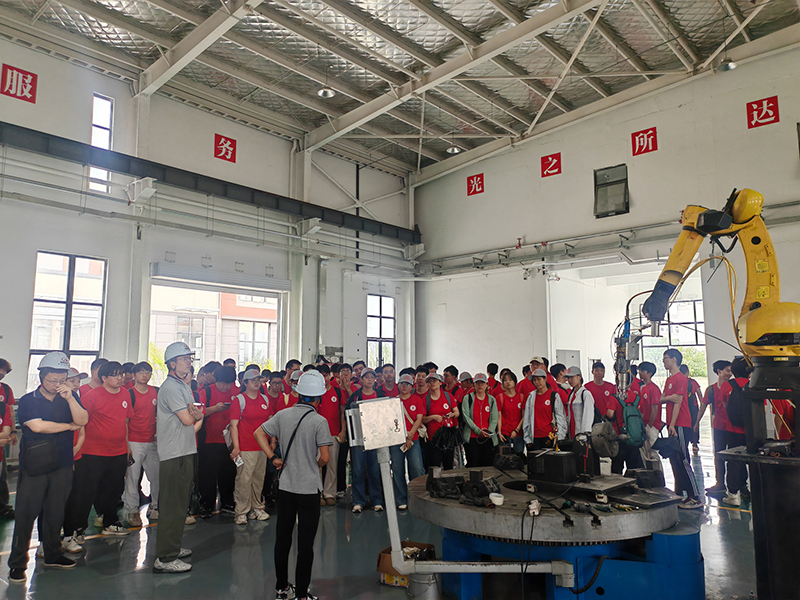 廠房內(nèi),先進(jìn)的激光設(shè)備整齊排列,自動化生產(chǎn)線高效運(yùn)轉(zhuǎn)。賀毅廠長詳細(xì)介紹了每一臺設(shè)備的功能、性能參數(shù)以及操作流程。在激光熔覆設(shè)備前,他講解了激光熔覆技術(shù)如何通過精確控制激光能量,將特殊合金粉末熔化并均勻地涂覆在金屬表面,從而顯著提高金屬材料的耐磨性、耐腐蝕性和疲勞強(qiáng)度等性能。在激光 3D 打印區(qū)域,師生們親眼目睹了復(fù)雜零部件如何在層層堆積的粉末與激光的精準(zhǔn)作用下逐漸成型,深刻感受到了增材制造技術(shù)的神奇魅力。對于師生們提出的各種問題,賀毅廠長和現(xiàn)場的技術(shù)人員都一一耐心解答,現(xiàn)場互動頻繁,氣氛十分活躍。