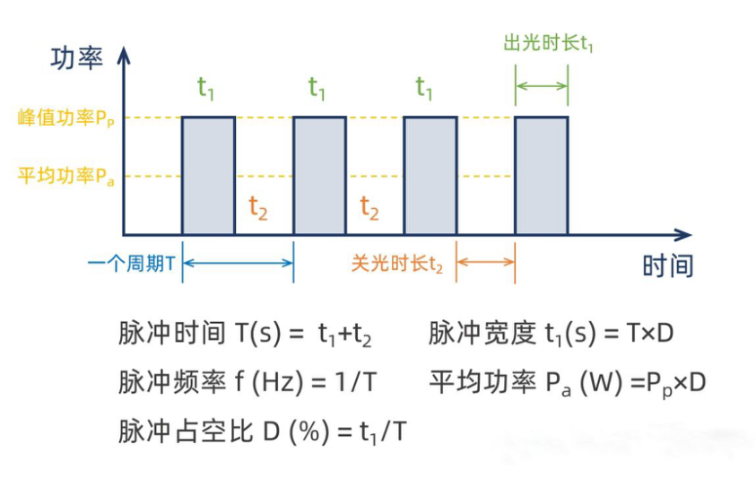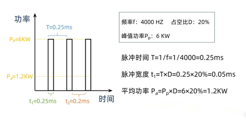 通常,我們在激光工藝調(diào)試中,對激光進(jìn)行調(diào)制時(shí),會(huì)設(shè)定峰值功率、脈沖頻率與占空比。接下來,我們用一個(gè)實(shí)例來說明如何計(jì)算PWM的各項(xiàng)參數(shù)。