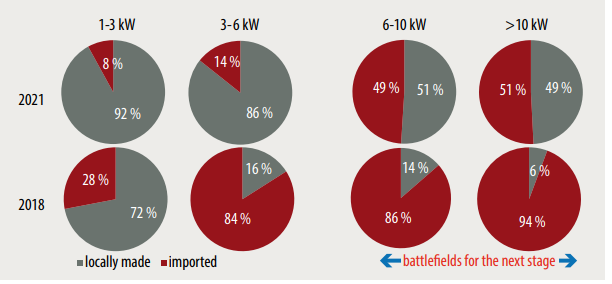 圖4 2018年與2021中國(guó)高功率光纖激光器國(guó)產(chǎn)化趨勢(shì)。