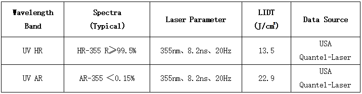 表1 355nm損傷測試數(shù)據(jù)(Tested By USA Quantel-Laser)