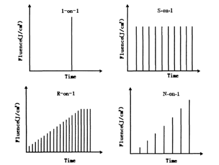 損傷閾值測試方法有R-on-1,S-on-1,1-on-1和N-on-1,可根據(jù)產(chǎn)品的實(shí)際特性和客戶需求進(jìn)行測試,從而監(jiān)控基底材料、拋光元件以及膜層表面的損傷閾值。通過損傷測試不僅可為產(chǎn)品激光損傷閾值的改善和提高提供依據(jù),同時(shí)通過對每批次產(chǎn)品激光損傷閾值的一致性進(jìn)行監(jiān)控,從而確保激光元器件在高功率條件下的優(yōu)良性能。