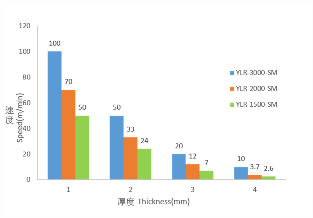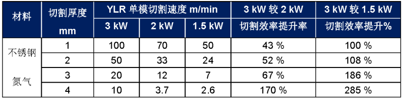 圖表1. 不同功率YLR單模激光器不銹鋼氮氣切割速度對比