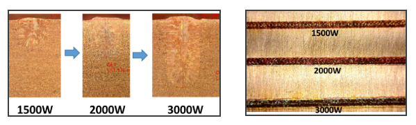 圖表4. 不同功率YLR單模激光器焊接效果對比