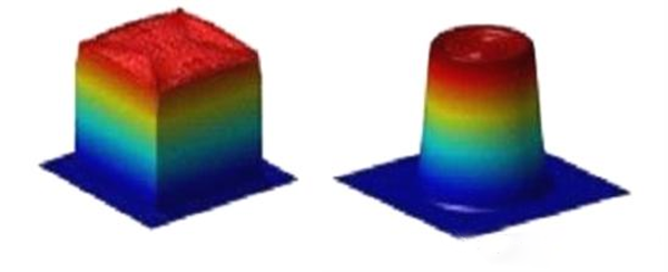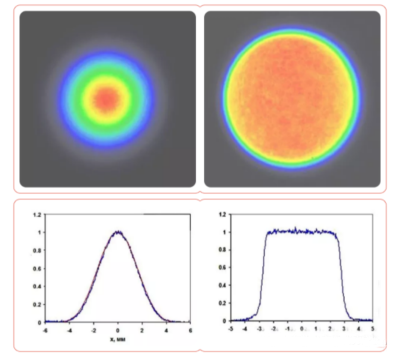 下圖所示分別為高斯激光輪廓和平頂激光輪廓的特點(diǎn):