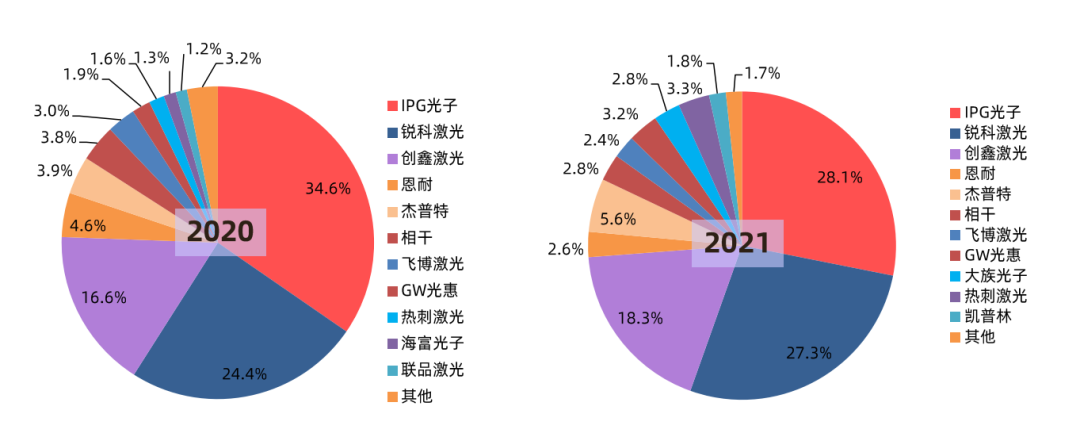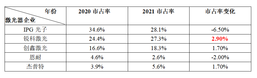 低價(jià)內(nèi)卷就一定能贏得市場(chǎng)嗎?銳科激光始終走穩(wěn)扎穩(wěn)打的技術(shù)路線,堅(jiān)持做品質(zhì)產(chǎn)品,拒絕內(nèi)卷,反而贏得了市場(chǎng)的認(rèn)可。根據(jù)中國(guó)激光產(chǎn)業(yè)發(fā)展報(bào)告,銳科激光的國(guó)內(nèi)市場(chǎng)銷售份額從2020年的24.4%增長(zhǎng)至2021年的27.3%,占據(jù)國(guó)產(chǎn)光纖激光器國(guó)內(nèi)市場(chǎng)占有率第一的位置,幾乎追平國(guó)外頭部激光器企業(yè)在中國(guó)的市場(chǎng)份額(相差不足1%)。從市占率變化來(lái)看,銳科在眾多激光企業(yè)中提升最快,這一定程度地通過市場(chǎng)認(rèn)證了銳科拒絕內(nèi)卷,堅(jiān)持走高端制造戰(zhàn)略路線的正確性。