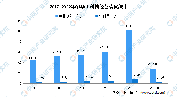 華工科技產(chǎn)業(yè)股份有限公司1999年成立于“中國(guó)光谷”腹地,2000年在深圳交易所上市,是集“研發(fā)、生產(chǎn)、銷售、服務(wù)”為一體的高科技企業(yè)集團(tuán),2015年評(píng)定為國(guó)家級(jí)創(chuàng)新型企業(yè)。經(jīng)過(guò)多年的技術(shù)、產(chǎn)品積淀,形成了以激光加工技術(shù)為重要支撐的智能制造裝備業(yè)務(wù)、以信息通信技術(shù)為重要支撐的光聯(lián)接、無(wú)線聯(lián)接業(yè)務(wù),以敏感電子技術(shù)為重要支撐的傳感器以及激光防偽包裝業(yè)務(wù)三大業(yè)務(wù)格局。2021年,華工科技營(yíng)業(yè)收入達(dá)101.67億元,實(shí)現(xiàn)凈利潤(rùn)7.61億元,同比增長(zhǎng)38.24%。2022年第一季度,華工科技實(shí)現(xiàn)營(yíng)業(yè)收入28.58億元,實(shí)現(xiàn)凈利潤(rùn)2.26億元。