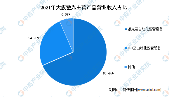 從主營(yíng)產(chǎn)品來(lái)看,2021年大族激光主營(yíng)激光及自動(dòng)化配套設(shè)備、PCB及自動(dòng)化配套設(shè)備,營(yíng)業(yè)收入分別為111.78億元、40.81億元,分別占主營(yíng)業(yè)務(wù)收入的68.44%、24.98%。