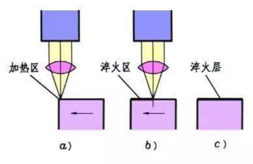 激光淬火是利用聚焦后(或經(jīng)過光束整形)的激光束加熱于金屬表面使其發(fā)生馬氏體相變形成馬氏體淬硬層的過程,經(jīng)過激光淬火加工后工件表面粗糙度基本不變,不需要后續(xù)機(jī)械加工就可以滿足實(shí)際工況的需求;